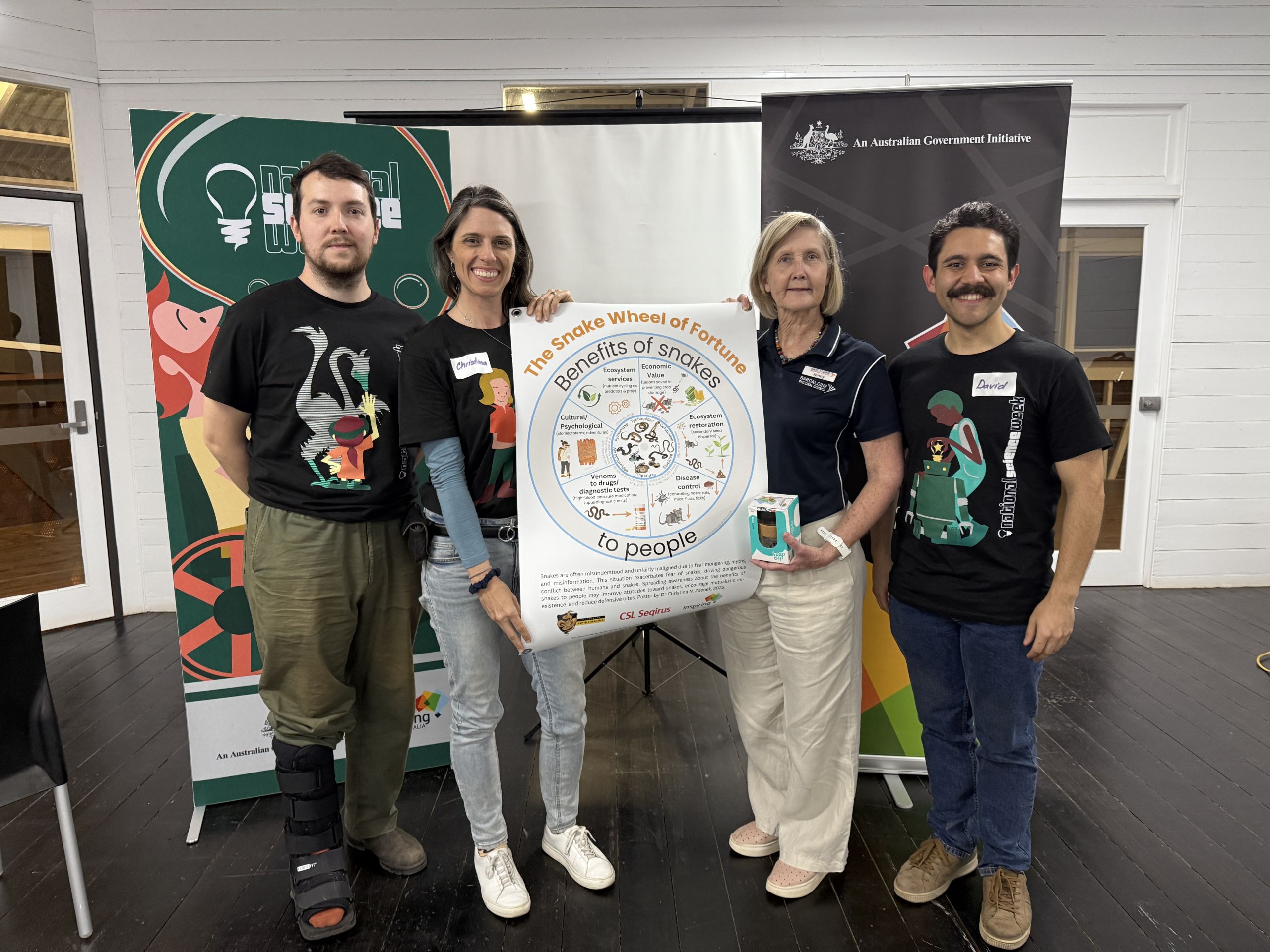 At the Boulia Shire Hall, the travelling launch sparked lively engagement, with audience members posing challenging questions about quantum physics and its real-world applications. One particularly inspiring moment came when a local student shared their newfound dream of becoming an astronaut, motivated by meeting David Corporal, IAQ ambassador and NASA intern. Dr Christina Zdenek’s Snake Wheel of Fortune continued to be a huge success with the locals, and highlighting the benefits of snakes!